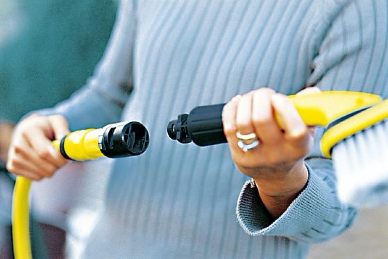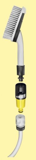 Адаптер присоединения любых моечных щеток и губок Karcher к садовым шлангам с системой быстроразъемного соединения.