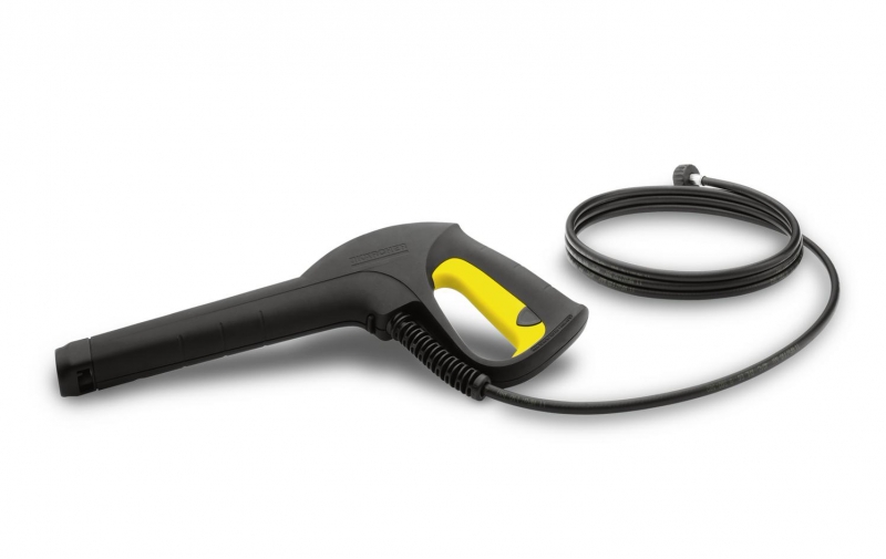 Запасной пистолет (под скобу) для бытовых аппаратов высокого давления Karcher классов K 2 — К 7. Подходит ко всем аппаратам, у которых шланг прикрепляется к пистолету зажимом (без системы Quick Connect).