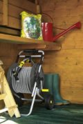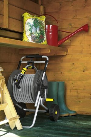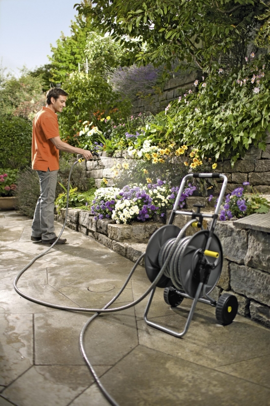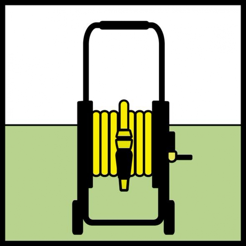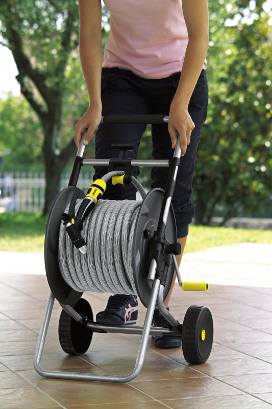 - Направляющая для шланга и рукоятка свободного хода для управления катушкой