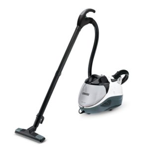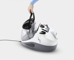 Этот новый паропылесос Керхер одновременно выполняет 3 функции: паровой чистки, всасывания и сушки. Поэтому он отлично подойдёт для уборки больших площадей с покрытиями из плитки, природного камня или ПВХ. Засчет наличия дополнительного бачка для доливки в 0,5 литра вы можете производить непрерывную уборку паропылесосом Karcher SV 7. |