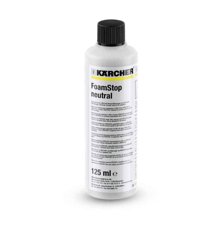 Жидкий нейтральный пеногаситель Karcher предотвращает нежелательное пенообразование в пылесосах с аквафильтром, а также в паропылесосах. Объем 125 мл.