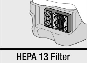 • Фильтр НEPA 13 (высокоэффективный фильтр, надежнозадерживающий аллергены. Выпускаемый пылесосом воздух оказывается чище комнатного)